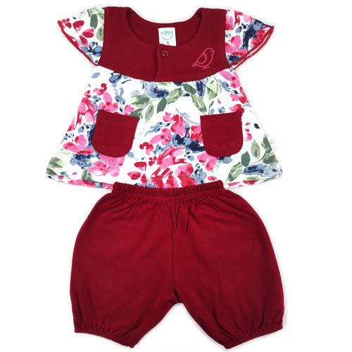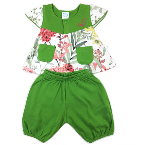 Half Sleeve Frock with front placket and three by forth for baby Girl
