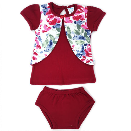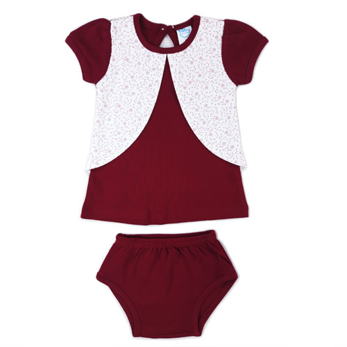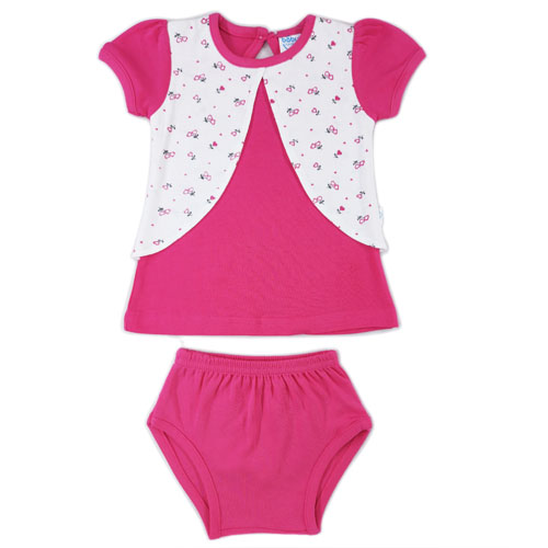 Half Sleeve Frock attached with wastecoat and pantees for baby Girl
