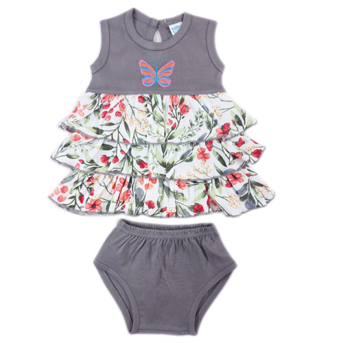 Sleevless Frock with 3 Layered Frill and Panties for baby Girl