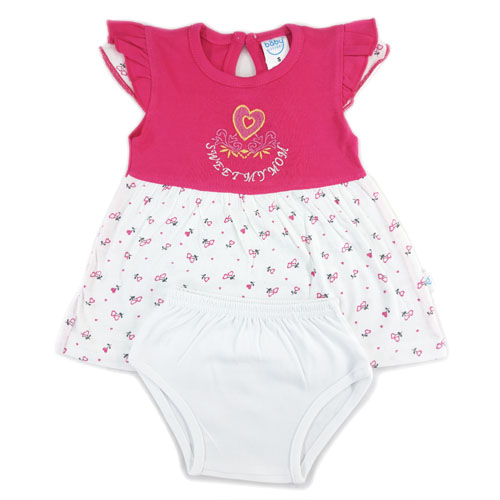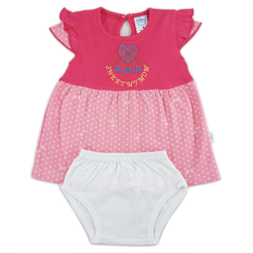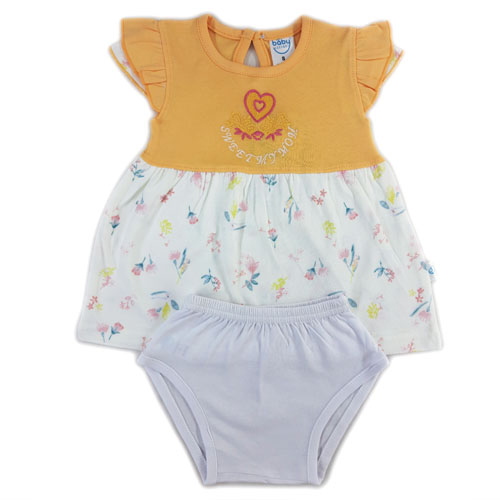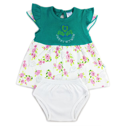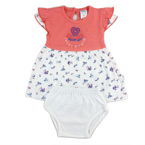 Double Half sleeve Frock with Chest Embroidery and panties for baby Girl
