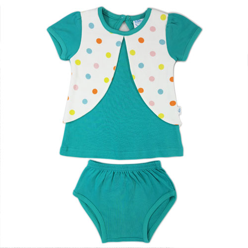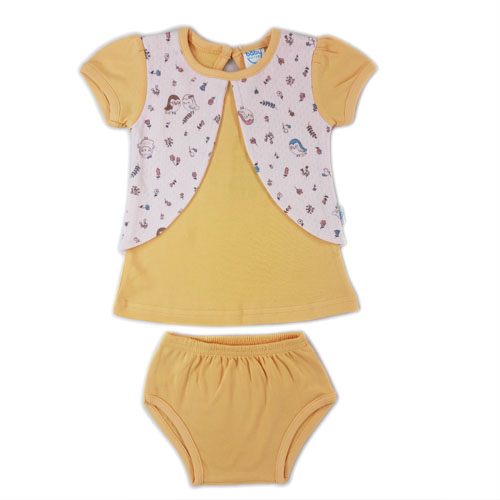Half Sleeve Frock attached with wastecoat and pantees for baby Girl