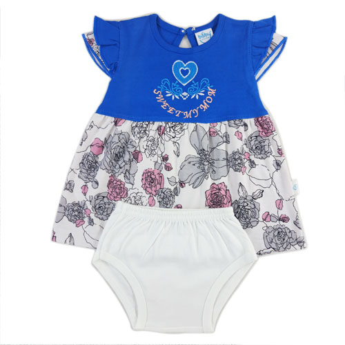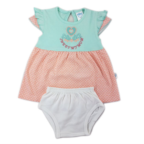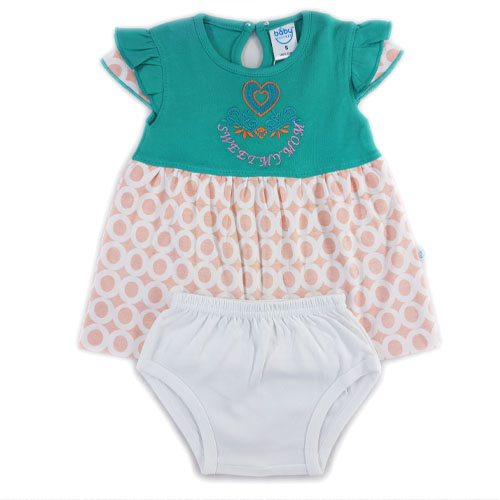 Double Half sleeve Frock with Chest Embroidery and panties for baby Girl