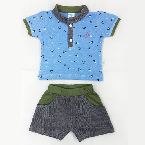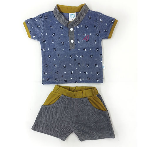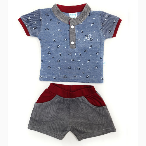 Half Sleeve stand up collar top with Double pocket shorts for Boys